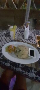 Y hoy para terminar otro Maravilloso dia..cene en este restaurante local, Pollo pilau.. con arroz..
